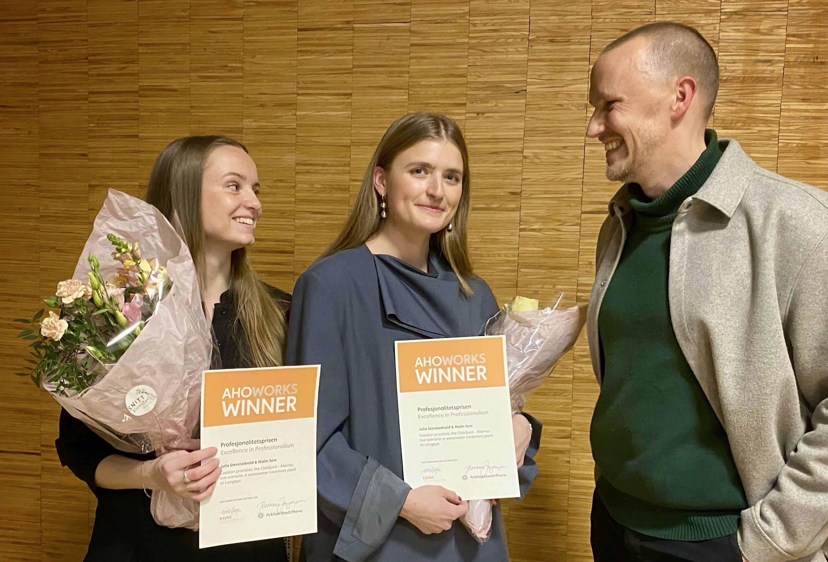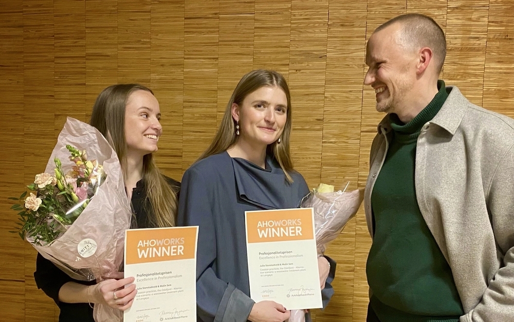 Arkitektbedriftene hadde torsdag gleden av å dele ut Profesjonalitetsprisen til to kompetente og profesjonsklare dimittender fra Arkitektur- og designhøgskolen i Oslo (AHO).